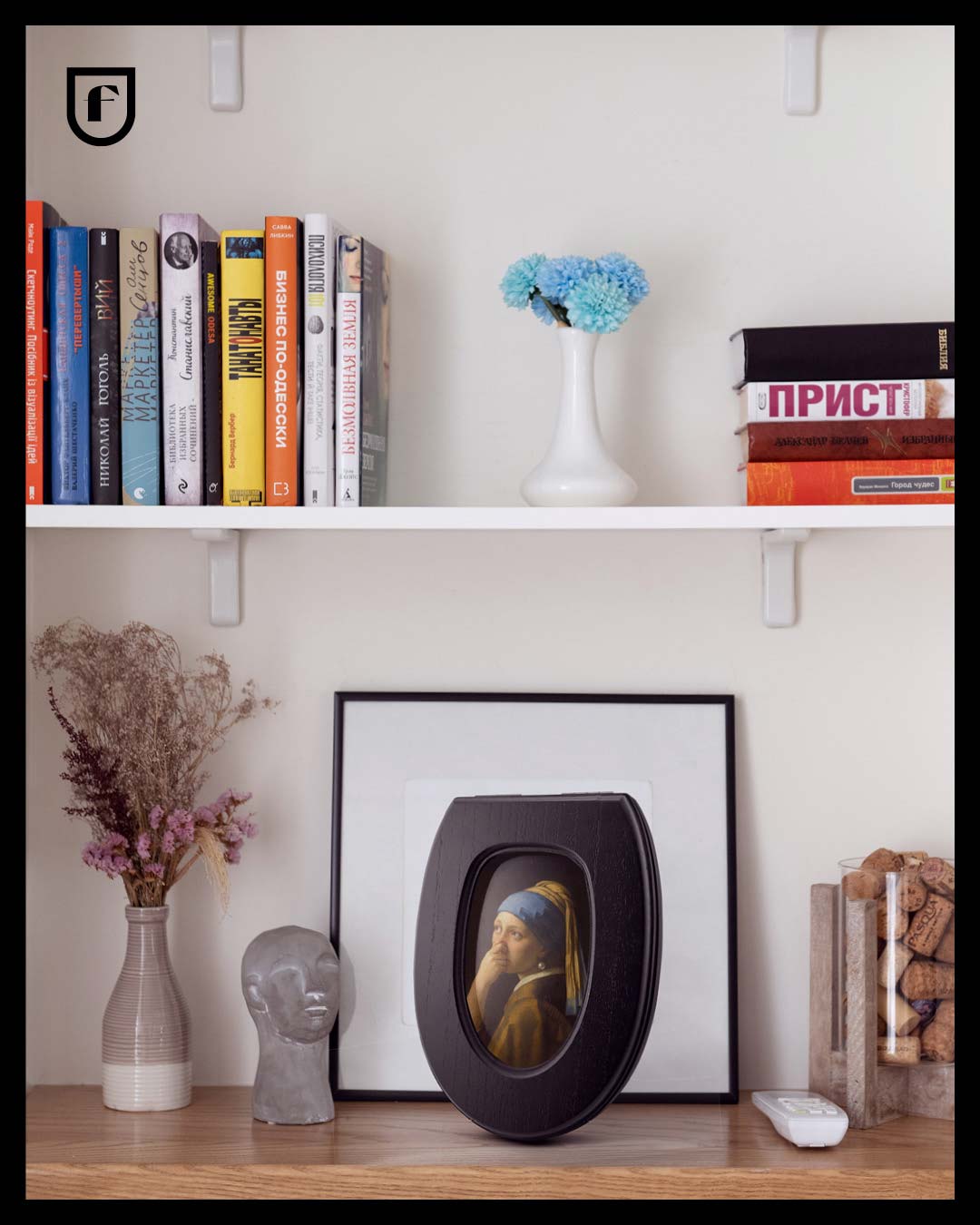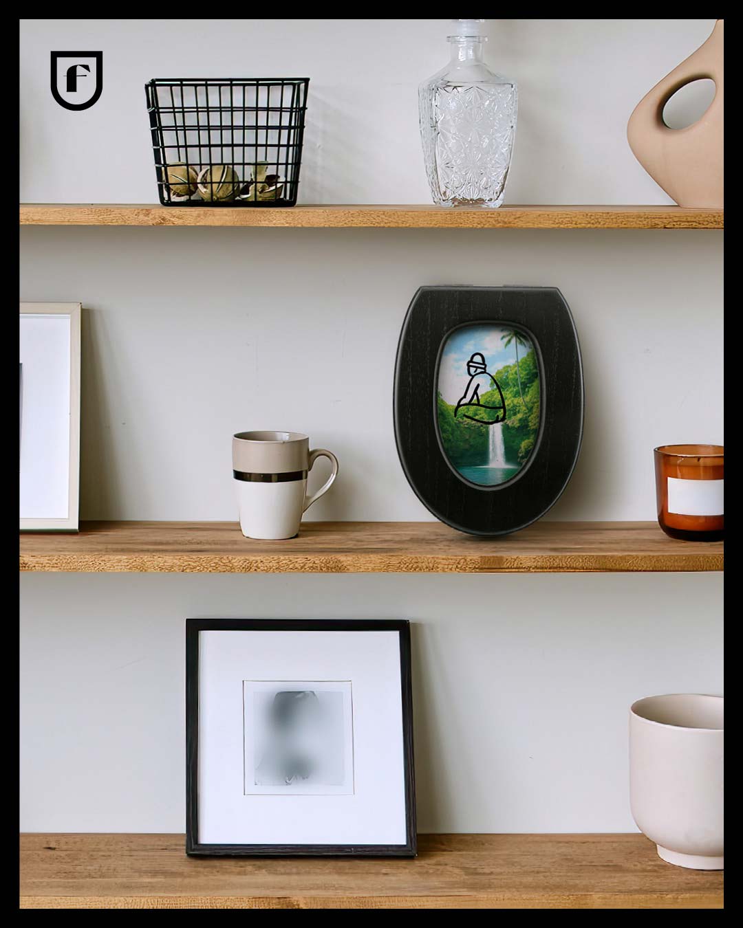 Framelette ist ein humorvoller Bilderrahmen in Form einer Mini-Klobrille, in den