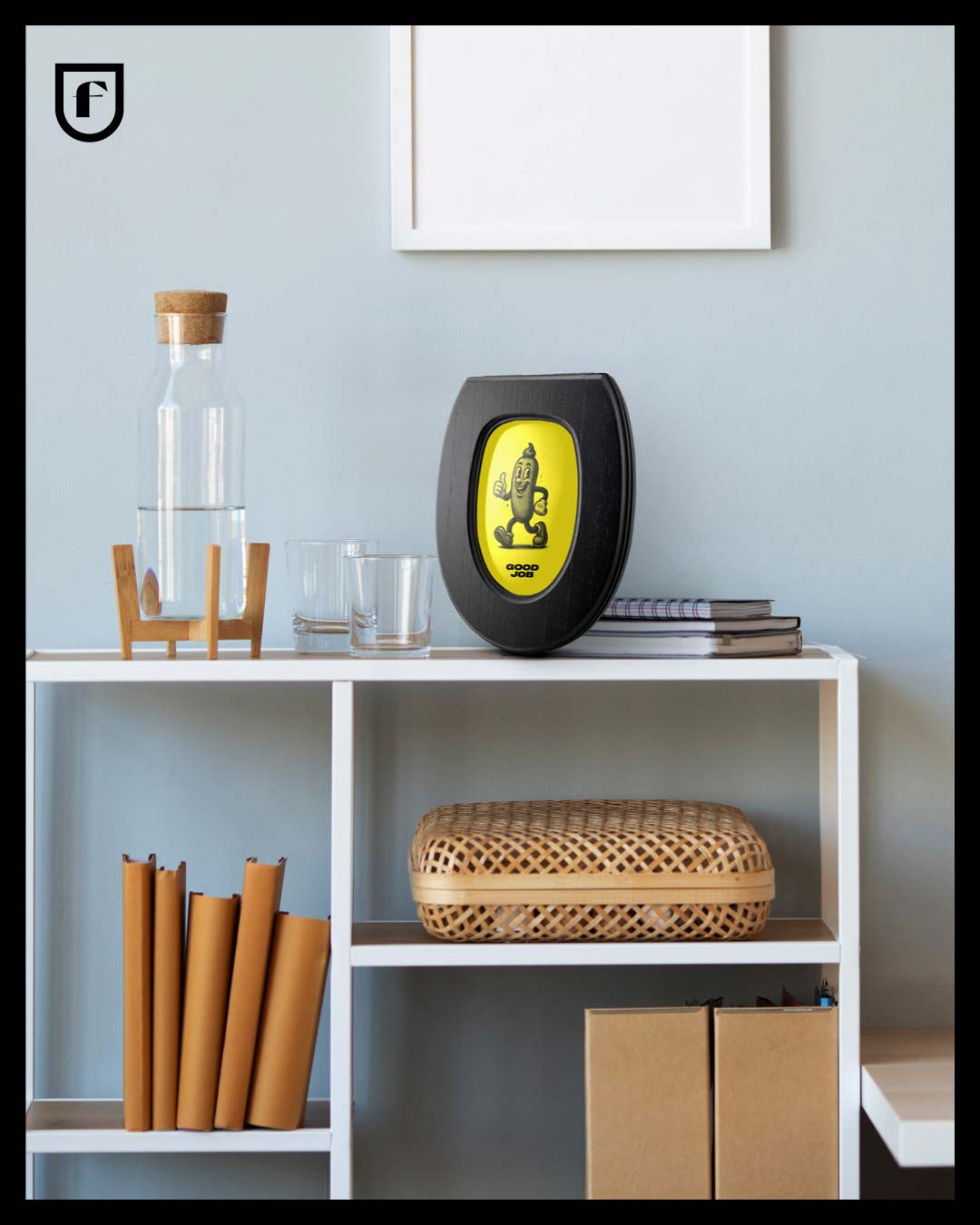 Framelette wird in einer humorvollen, nachhaltigen Verpackung geliefert.