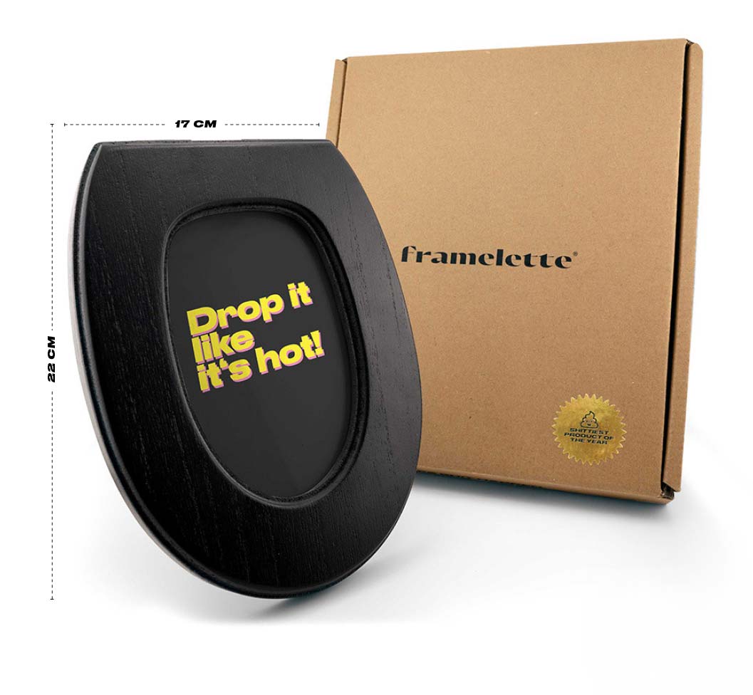 Es gibt für alles den richtigen Anlass – und das richtige Örtchen. Der framelette Klobrillen-Bilderrahmen macht jede Gästetoilette zum Highlight, peppt deine Studenten-WG auf, sorgt für Lacher in der Kneipe um die Ecke, oder wird zum witzigen Wandschmuck im Büro. Ob als Geschenk oder für dich selbst: framelette ist perfekt für eigene Fotos, lustige Postkarten, oder die mitgelieferten Motive.